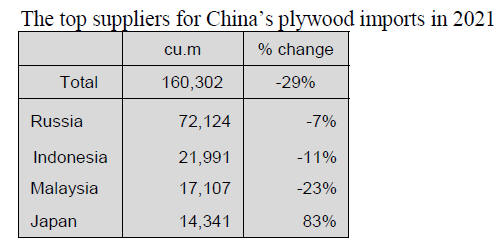 suppliers of plywood to China in 2021 accounting for