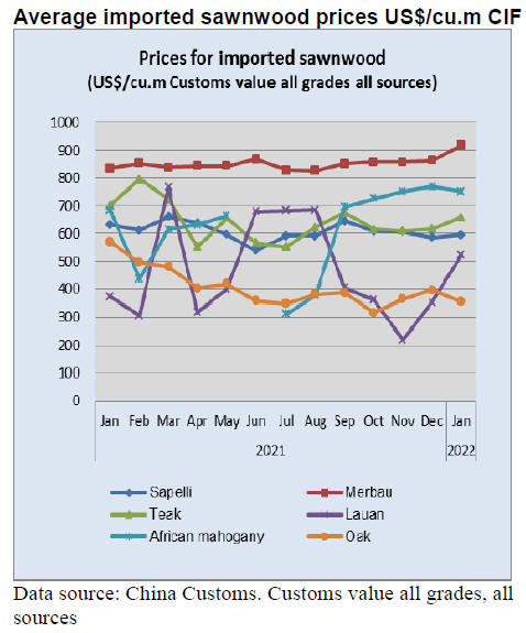 According to China Customs, sawn rubberwood imports in