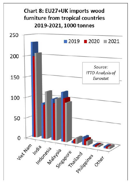 EU27+UK tropical wooden furniture imports increased by