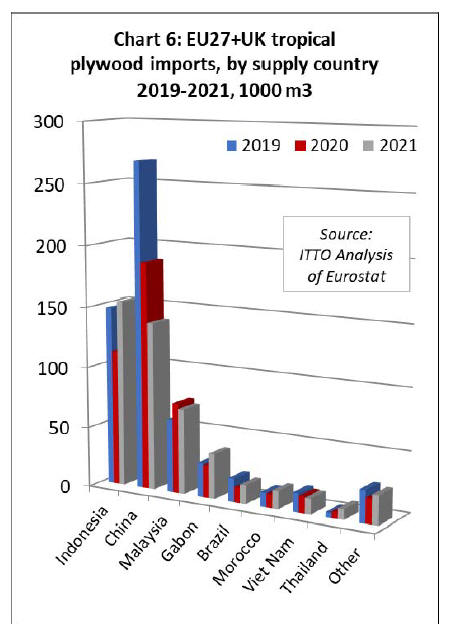 plywood imported into the EU27+UK last year was