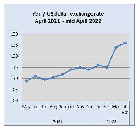 decline in exchange rate in early April when the yen was