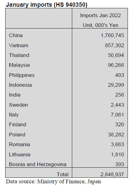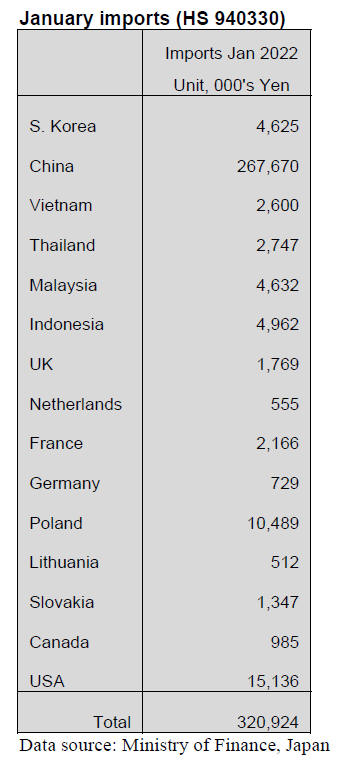 January office furniture imports (HS 940330)