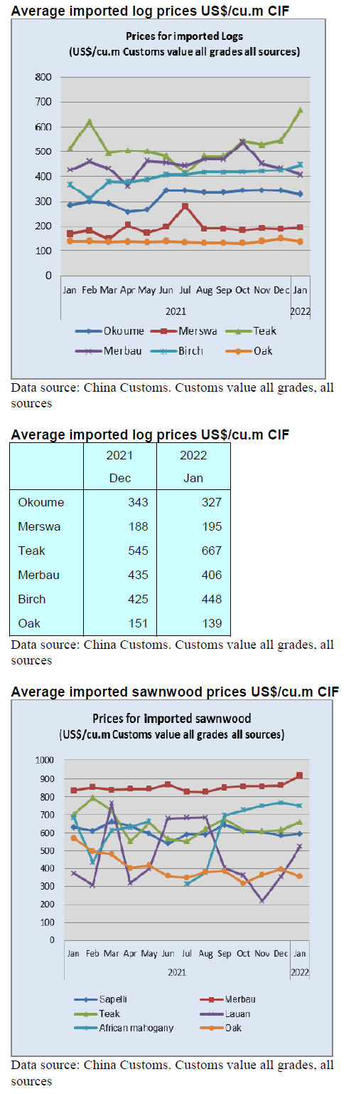 still rising, for example the price for veneer rose from
