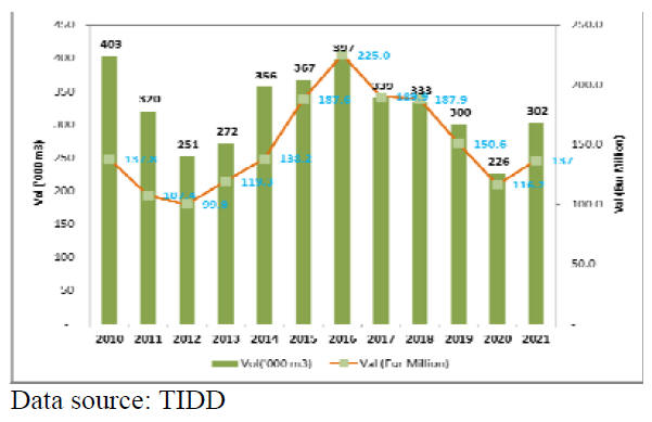 (US$2.8 million) in March 2021 to 6,200 cu.m (US$2.2
