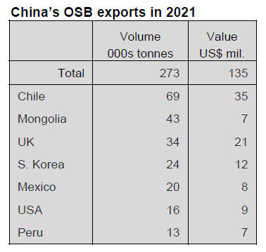 China¡¯s OSB exports in 2021 totalled 273,000 tonnes