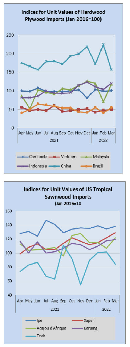 US imports of tropical hardwood, hardwood plywood and