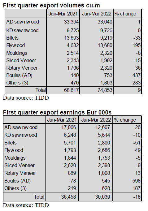sawnwood (US$12.6 million) and fuelwood and charcoal