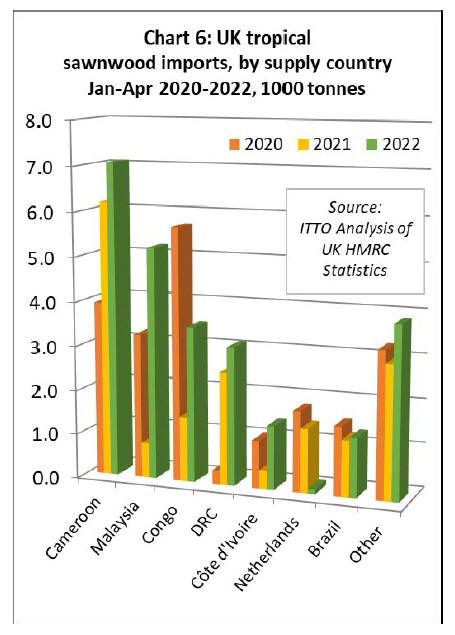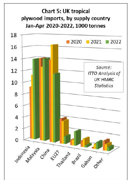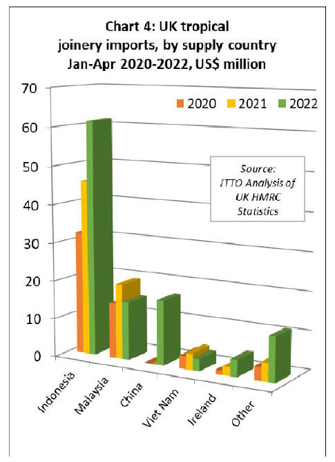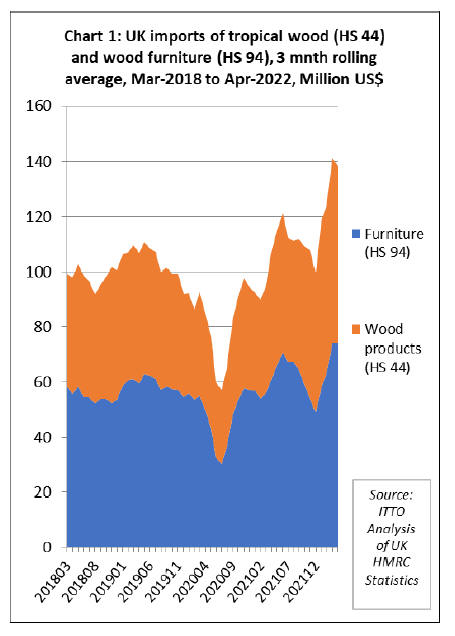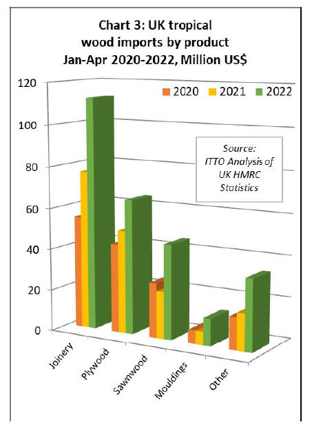 terms of UK import value of tropical wood and wood
