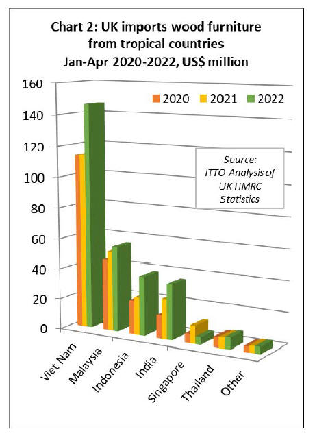 The import value of tropical wood and wood furniture into
