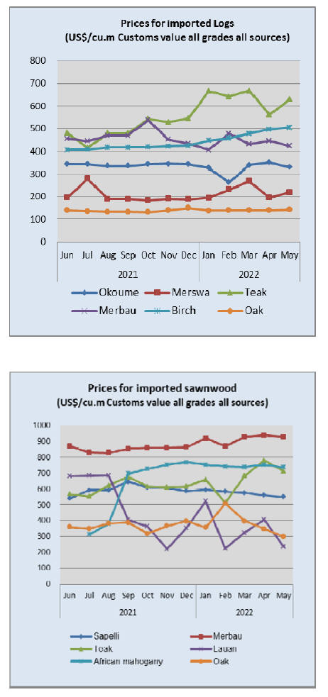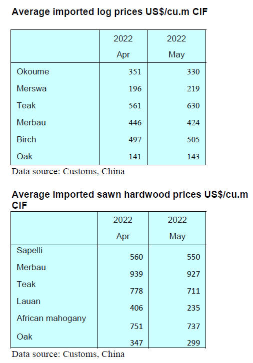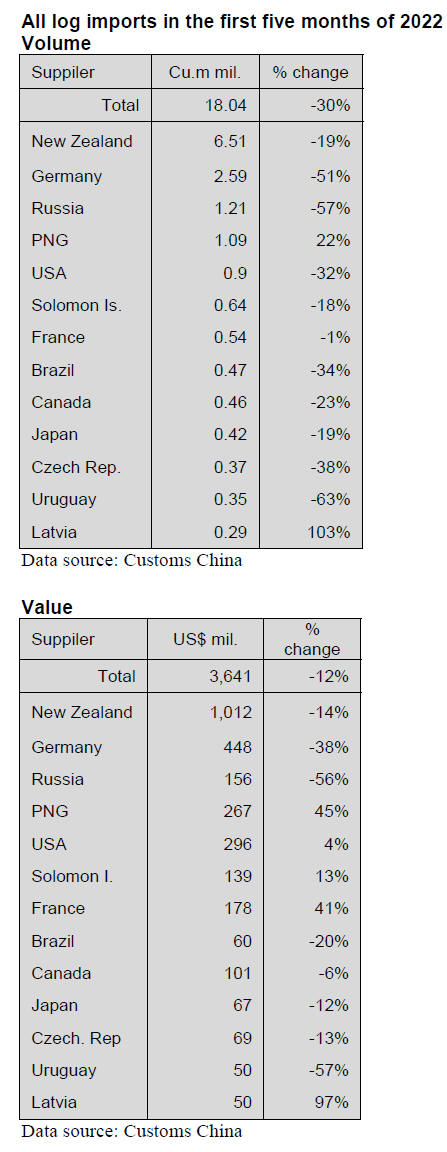 metres in the first five months of 2022. Hardwood log
