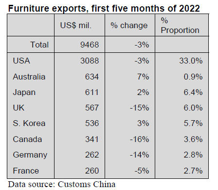 China¡¯s furniture exports to the USA has increased from