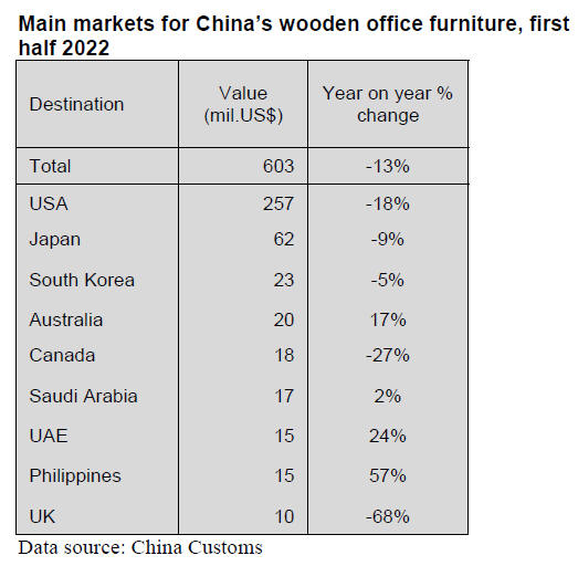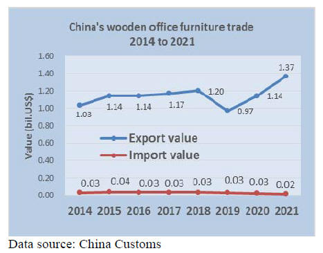 China exports more office wooden furniture than it