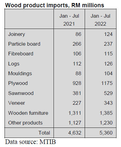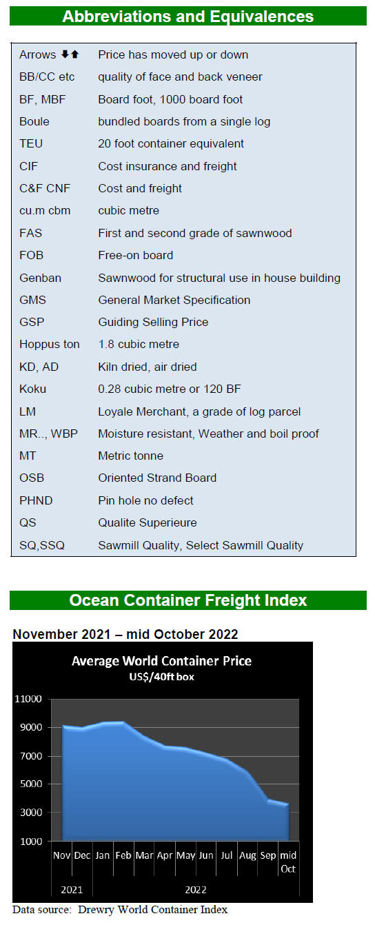 As for tropical plywood, the volume of exports also fell