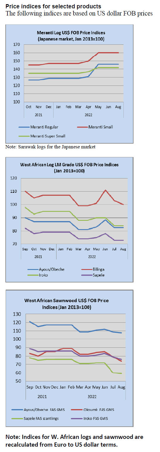 Tropical sawnwood exports increased 1% in volume, from