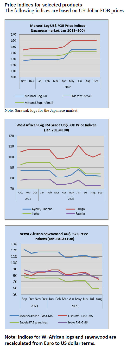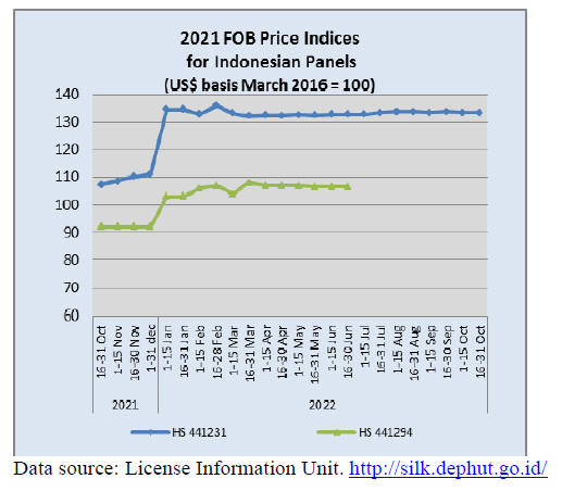 As for tropical plywood, exports dropped in volume by a
