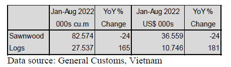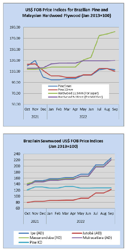 In September 2022 Brazilian exports of wood products