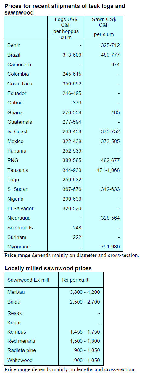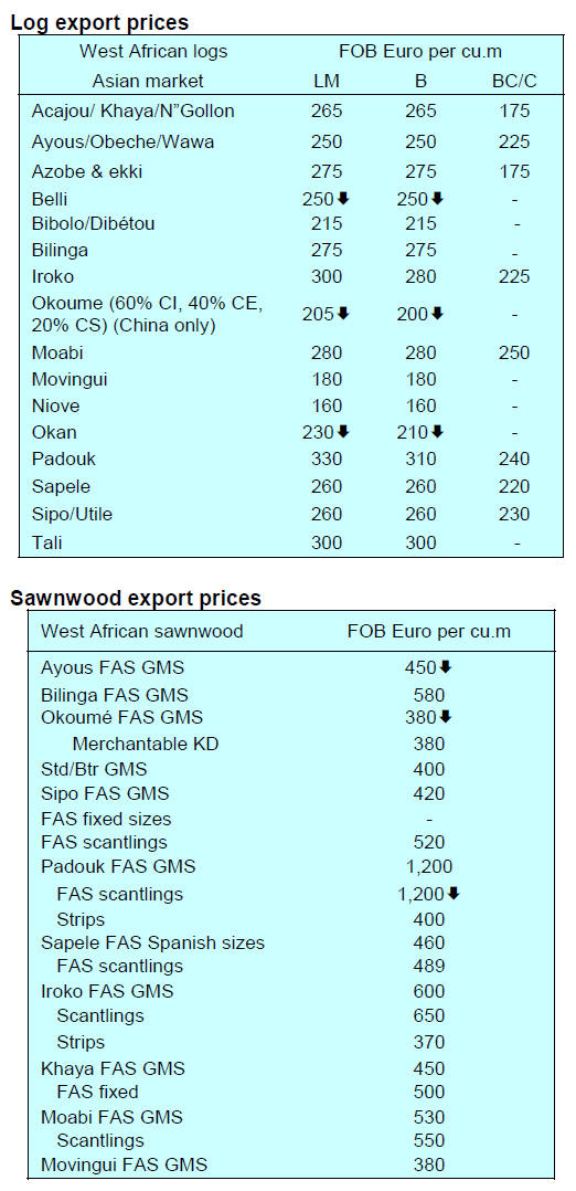 Tropical sawnwood exports declined 14% in volume, from