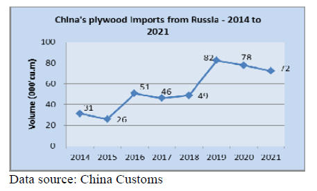 27% in value. Plywood imports from Russia grew 45% to