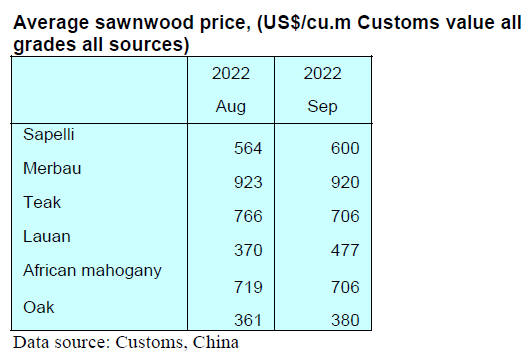In the first nine months of 2022 China’s sawnwood