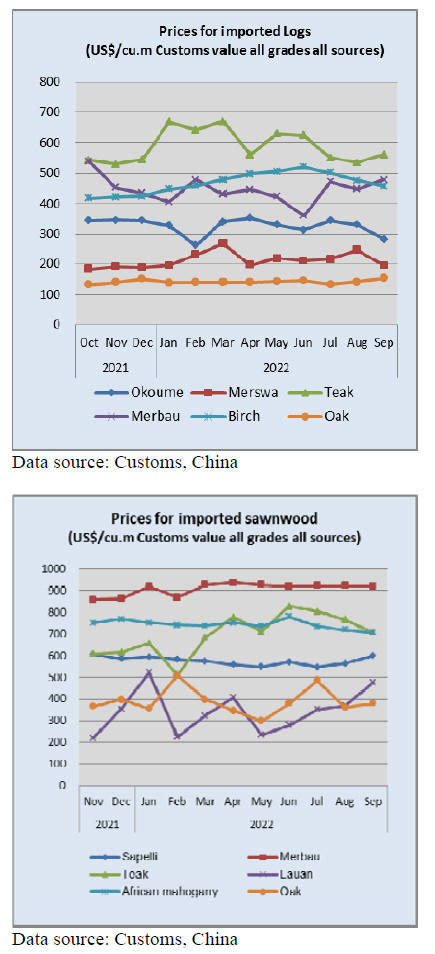 over the same period in 2021. The volume of China’s log