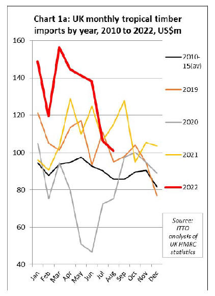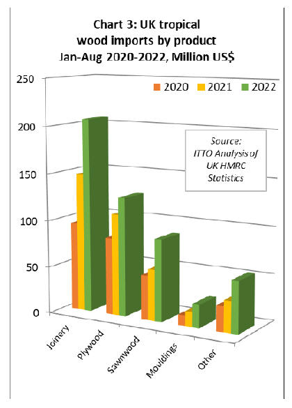 154,600 cu.m of tropical hardwood plywood, 21% less