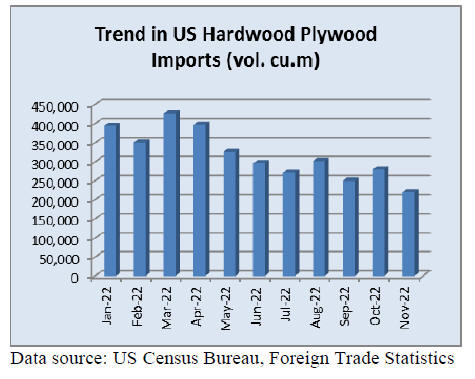 US imports of hardwood plywood declined by 21% in