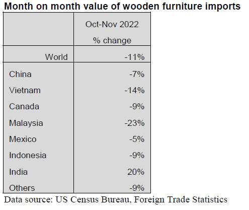 Wooden furniture imports fall in November