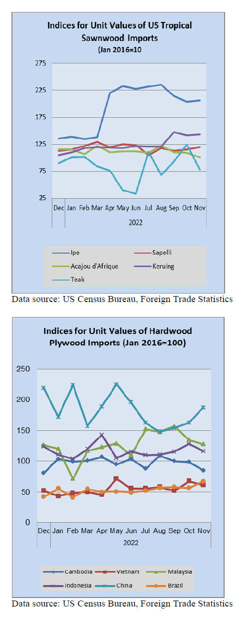 US imports of tropical hardwood rose 9% in November as