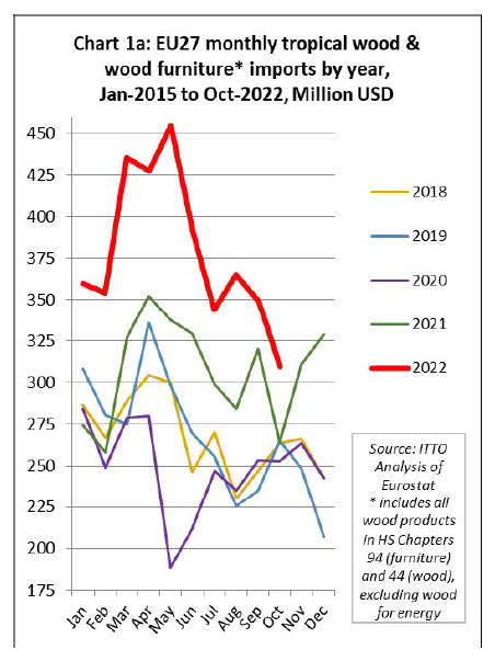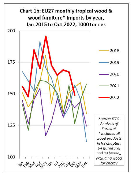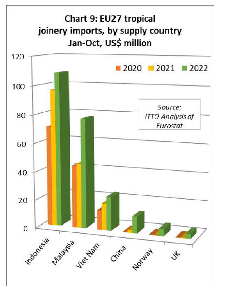 EU27 imported 92,800 tonnes of tropical joinery products,