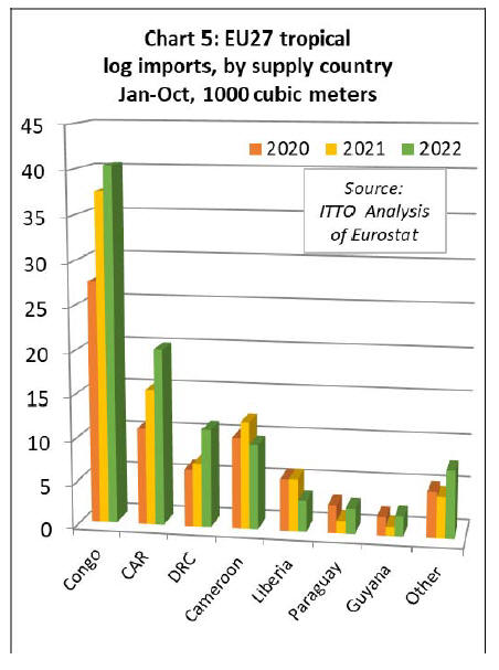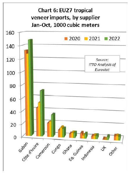 d'Ivoire (+34% to 71,300 cubic metres), Cameroon (+45%