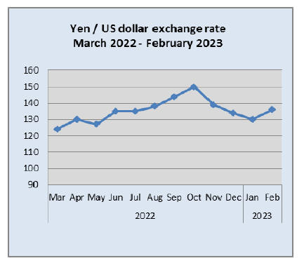 down to 136 to the dollar.