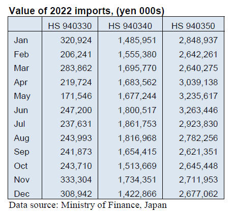 furniture (HS940330) imports in 2022 was down 10% on