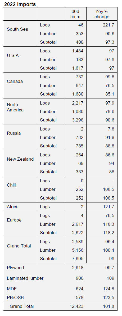 boards and OSB are 110,000 cbms up from 2021.