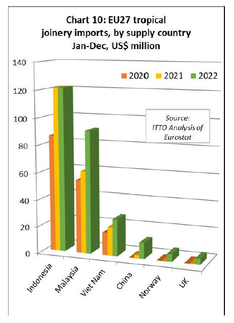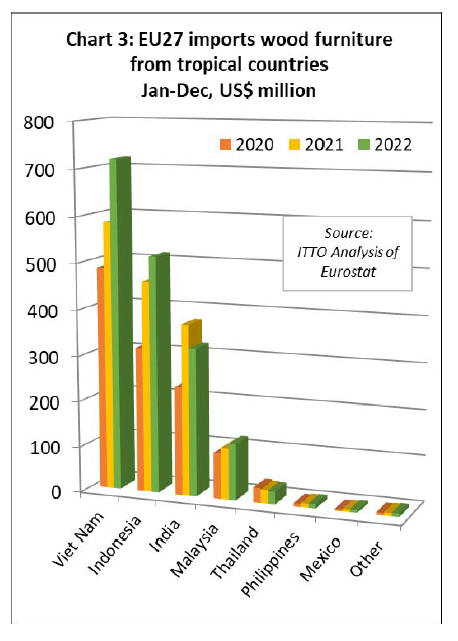 In value terms, EU27 tropical wood and wooden furniture