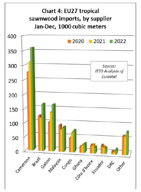Unlike sawnwood, EU27 imports of tropical