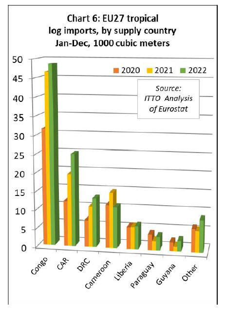 countries last year; Congo (+4% to 48,600 cubic metres),