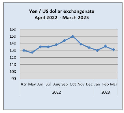 short lived. On 10 April the yen was at 133 to the US