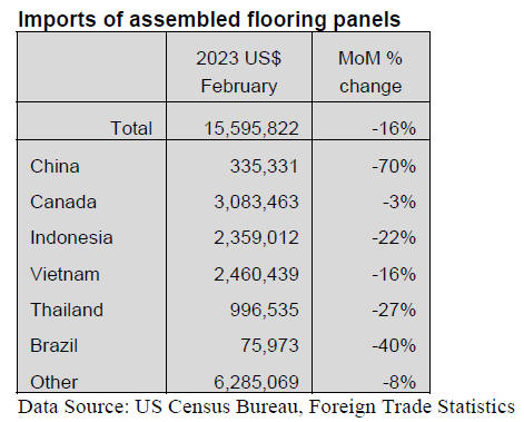 date. Total imports of assembled flooring panels are down