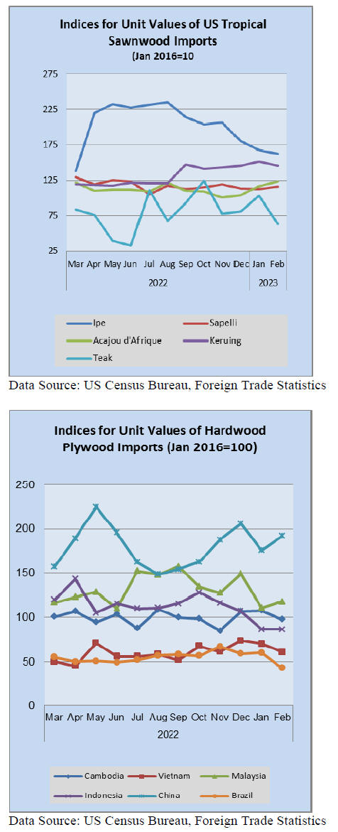 downward path in February. Imports of hardwood