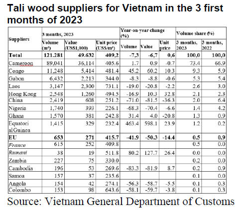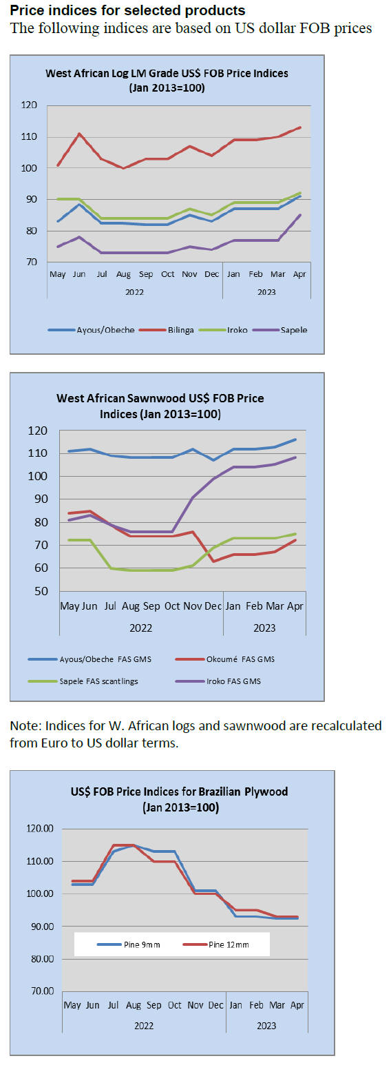As for tropical plywood, exports declined in volume by 64% and in value by