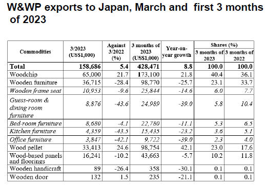 As for wooden furniture, the exported value declined from US$52.8 million in
