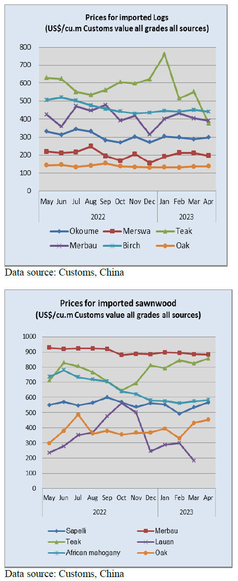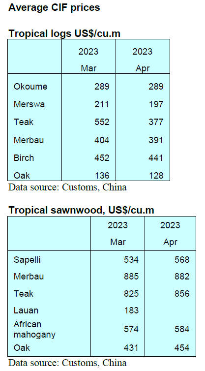 In April China's domestic demand for wood products remained strong and the