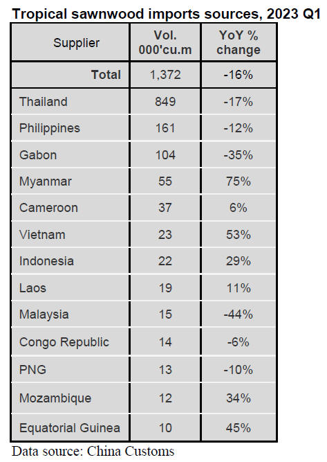 suppliers for China’s tropical sawnwood imports vary considerably. The CIF