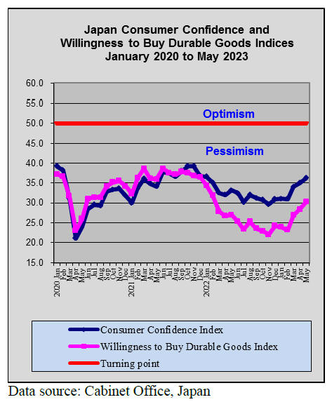 Japanese consumer sentiment improved for the third consecutive