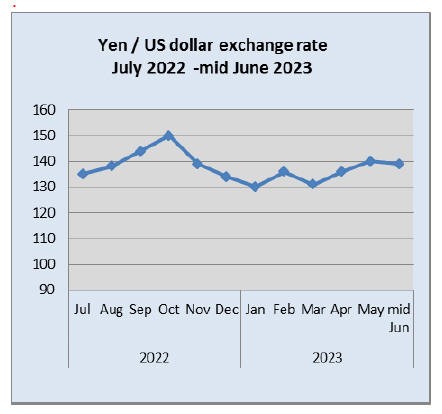 in the BoJ monetary policy. In mid-June the yen was at 139 plus to the US