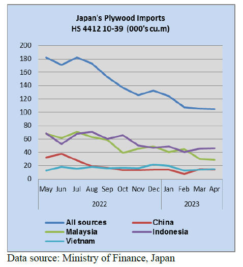 2023. Volume of Malaysian and Indonesian plywood has been decreasing and