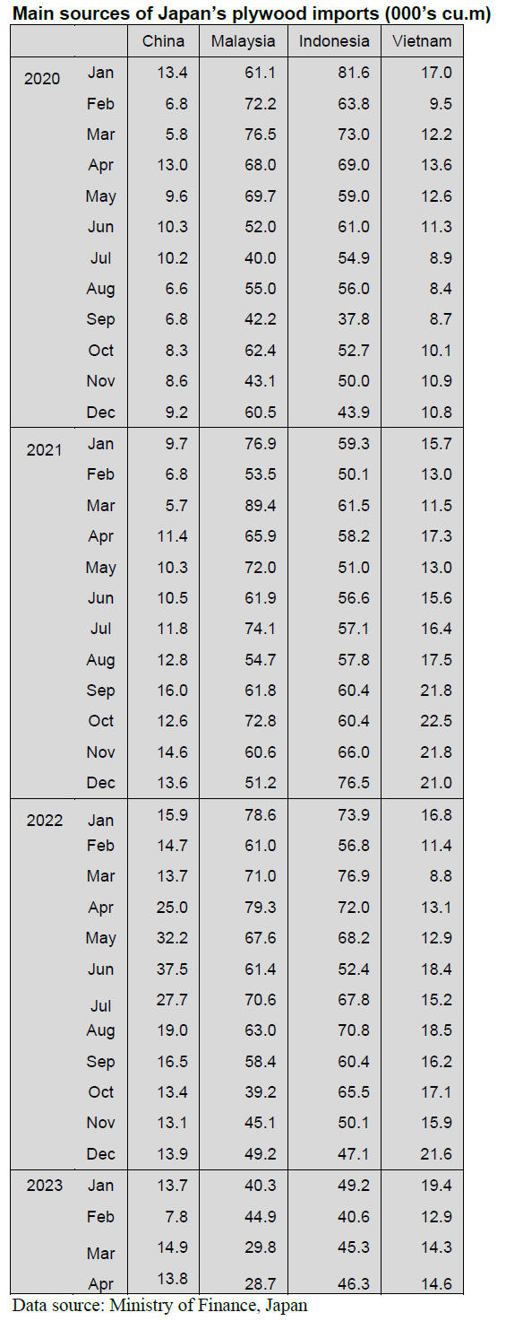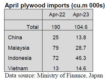 of plywood shipments to Japan from both of the main suppliers, Indonesia and