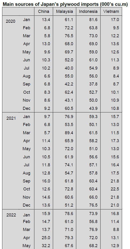 Volume of South Sea plywood has been low and several kinds of structural