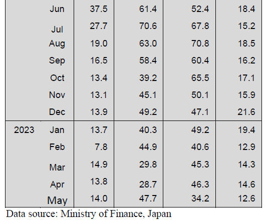 Japan fell in May for the third month in a row, dropping 4% year on year.