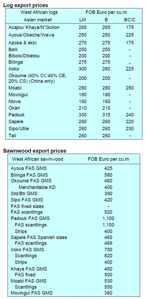 Weaker demand for okoume and ayous in Asian markets